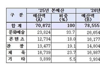 oto방송 김민석 기자 | 문화체육관광부는 2026년도 문체부 예산이 7조 8,555억 원으로 최종 확정되었다고 밝혔다. 이는 올해 본예산 대비 7,883억 원(11.2%)이 증가한 규모이다. 문체부는 이번 예산을 ‘케이-컬처’ 300조 원 시대 출발을 위한 예산으로 콘텐츠산업의 국가전략산업화, 국민이 함께 누리는 관광 등에 주력해 편성했다고 밝힌 바 있다. 부문별로 살펴보면 콘텐츠 부문에서는 ‘케이-콘텐츠’ 펀드 출자(4,300억 원, +1,350억 원), 인공지능 콘텐츠 제작 지원(238억 원, +158억 원), 대중음악 공연환경개선 지원(120억 원, 신규), ‘케이-콘텐츠’ 복합문화공간 조성(155억 원, +150억 원), 게임 제작 환경 인공지능 전환 지원(75억 원, 신규), 방송영상 온라인동영상서비스(OTT) 특화콘텐츠 제작지원(399억 원, +96억 원) 등 총 1조 6,177억 원을 편성했으며, 올해 대비 가장 큰 폭(3,443억 원)으로 예산이 증가했다. 문화예술 부문에서는 ‘케이-아트’ 청년창작자 지원(180억 원, 신규), ‘케이-뮤지컬’ 지원(244억 원, +213억 원), 예술인 복지금고(50억