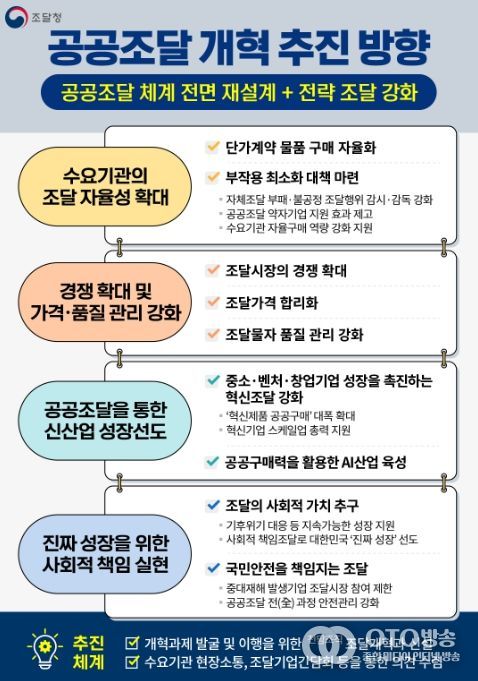 oto방송 김민석 기자 | 조달청은 19일 경제장관회의를 통해'공공조달 개혁방안'을 관계부처 합동으로 발표했다.