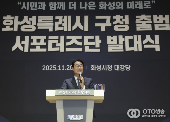 oto방송 김민석 기자 | 화성특례시는 20일 시청 대강당에서 ‘구청 출범 서포터즈단’ 발대식을 개최하고 시민 참여를 기반으로 한 구청 체제 출범 준비에 박차를 가했다.