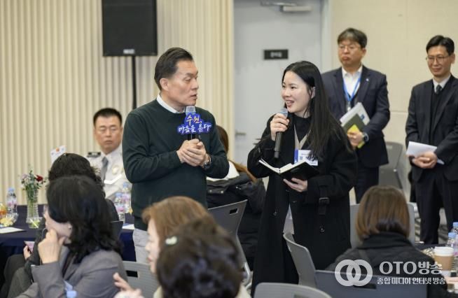 ‘2025 새빛만남- 수원, 마음을 듣다’에서 자주 볼 수 있는 풍경이다. 시민이 건의 사항을 이야기하면 담당 부서 책임자가 건의한 시민과 일정을 조율해 최대한 빨리 현장을 찾아 문제점을 확인하고, 개선 대책을 수립한다.