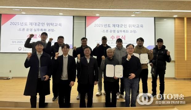 oto방송 김민석 기자 | 경기북부보훈지청 제대군인지원센터는 11월 21일에 경복대학교 평생교육대학(경기 남양주)에서 9월에 시작된 ‘드론 운영 실무특화’ 위탁교육과정을 성공적으로 마무리하고, 총 10명의 교육생 전원이 교육을 수료했다고 밝혔다.