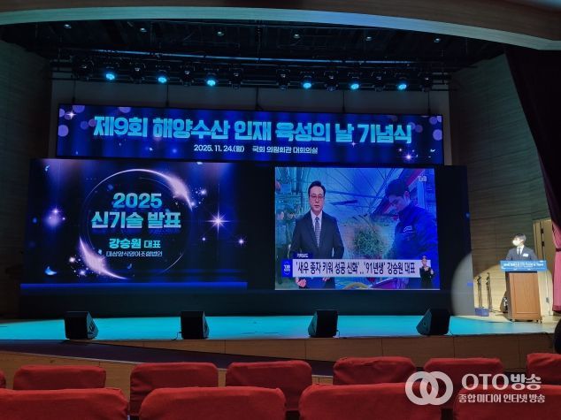 oto방송 김민석 기자 | 충남도 수산자원연구소는 24일 해양수산부가 주관하는 ‘2025년 해양수산 신지식인’에 송주현 기린컴퍼니 대표, 강승원 대상양식영어조합법인 대표가 선정됐다고 밝혔다.