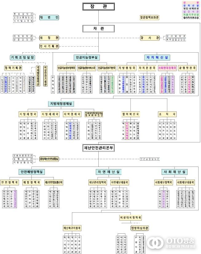 oto방송 김민석 기자 | 행정안전부는 인공지능(AI), 지방정부 및 국민안전 정책 수준을 한단계 더 높이고, 국정과제 추진동력을 강화하기 위한 조직개편을 실시했다고 밝혔다.