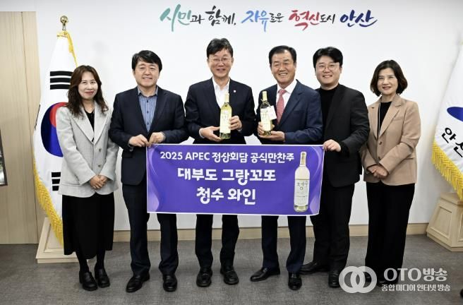 oto방송 김민석 기자 | 안산시는 최근 APEC 정상회의 공식 만찬주로 오른 그랑꼬또 ‘청수’와인 생산 법인 그린영농조합법인을 초청해 격려하는 자리를 마련했다고 26일 밝혔다.