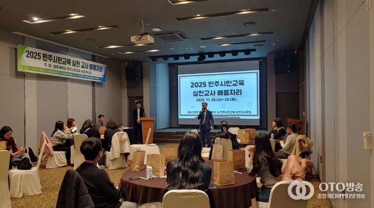 oto방송 김민석 기자 | 충남교육청은 11월 28일부터 29일까지 천안 오엔시티 호텔에서 도내 초중고·특수·대안학교 교사 33명을 대상으로 ‘2025 민주시민교육 실천 교사 배움자리’를 운영한다.
