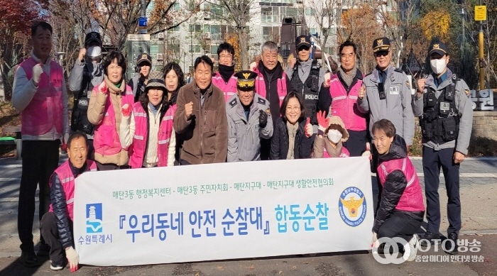 oto방송 김민석 기자 | 수원시 영통구 매탄3동은 지난 11월 28일 매탄지구대, 매탄3동 주민자치회와 ‘우리 동네 안전순찰대’ 4분기 합동순찰을 실시했다.