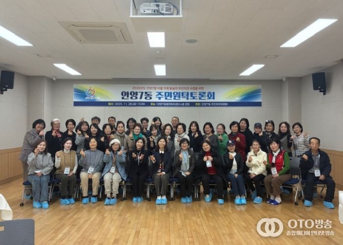 oto방송 김민석 기자 | 안양시 만안구 안양7동은 지난 11월 28일 행정복지센터 4층 강당에서 주민 30여 명이 참석한 가운데 ‘2026년 마을 의제 발굴을 위한 원탁토론회’를 개최했다고 1일 밝혔다.