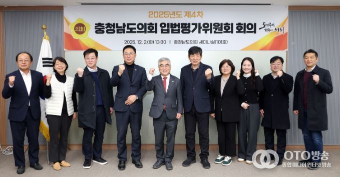 oto방송 김민석 기자 | 충남도의회는 2일 의회 세미나실에서 ‘2025년도 제4차 충청남도의회 입법평가위원회 회의’를 열고, 입법평가 연구용역 최종 보고와 함께 향후 조례 개선 방향, '지방의회법' 등 자치분권 법제 개선 방향 등을 공유했다.