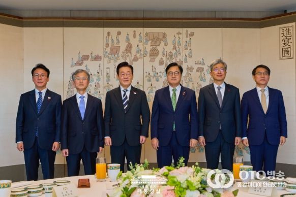 oto방송 김민석 기자 | 3일 이재명 대통령과 5부 요인의 오찬은 1시간 40분 동안 화기애애한 분위기 속에 진행됐다.