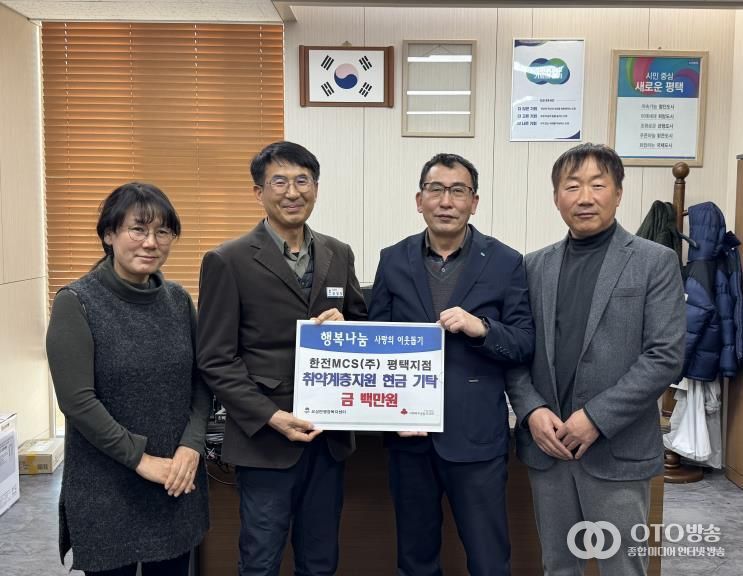 oto방송 김민석 기자 | 평택시 오성면 행정복지센터는 지난 3일 한전 MCS 평택지사 직원들이 조성한 ‘러브펀드’기부금 100만 원 전달식을 진행했다고 밝혔다.
