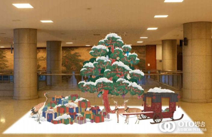 oto방송 김민석 기자 | 국가유산청 국립고궁박물관은 연말을 맞아 박물관을 방문하는 관람객들을 위해 소장 유물 '십장생도'를 활용한 크리스마스 트리 장식을 선보인다.