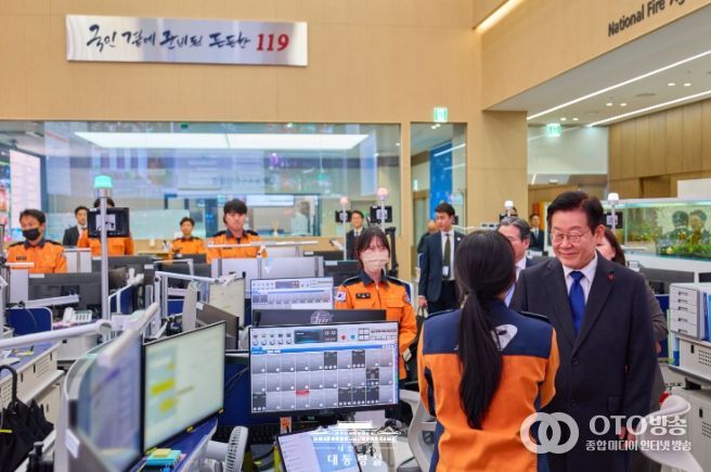 이 대통령은 먼저 소방청 119 종합상황실을 방문해 긴급 신고 접수와 출동 지휘 등 대응 현장을 직접 살폈다. 이어 중앙119 구급 상황 관리센터와 119 항공 운항 관제실에서 국민의 생명과 안전을 지키는 소방대원들의 노고를 치하했다.
