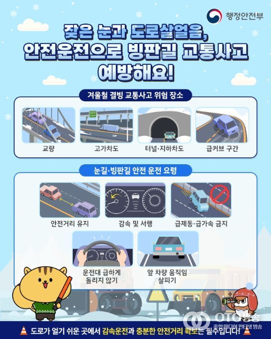 oto방송 김민석 기자 | 행정안전부는 겨울철에 발생하기 쉬운 빙판길 교통사고에 각별한 주의를 요청했다.