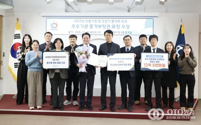 oto방송 김민석 기자 | 안양시는 중소벤처기업부가 주관한 ‘2025년 전통시장 및 상점가 활성화 유공’ 포상에서 우수 지자체로 선정돼 중소벤처기업부 장관 표창을 수상했다고 19일 밝혔다.
