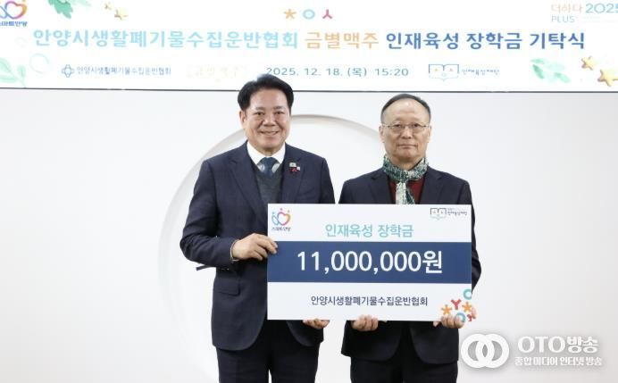 oto방송 김민석 기자 | 안양시인재육성재단은 연말을 맞아 지역 기업 및 사회단체의 따뜻한 장학금 기탁 행렬이 이어지고 있다고 22일 밝혔다.