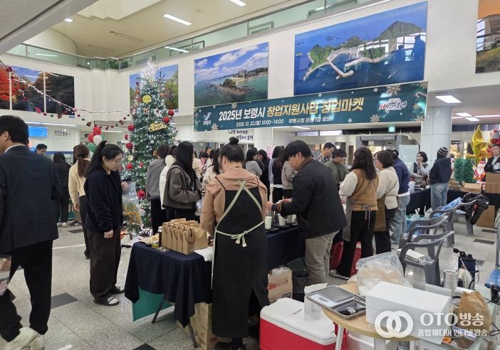 oto방송 김민석 기자 | 보령시는 22일 시청 본관 1층 로비에서 2025년 창업지원사업 ‘창업마켓’을 개최하고, 지역 창업기업의 제품 홍보와 판로 개척을 지원하는 뜻깊은 자리를 마련했다.