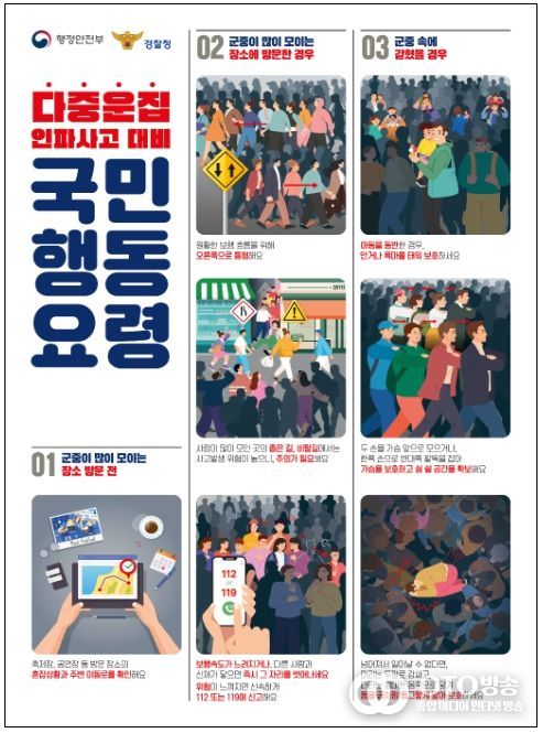 oto방송 김민석 기자 | 행정안전부는 연말연시를 앞두고 주요 번화가와 해넘이·해맞이 명소 등에 많은 인파가 몰릴 것으로 예상됨에 따라, 다중운집 인파 안전관리 대책을 12월 23일 국무회의에 보고했다.