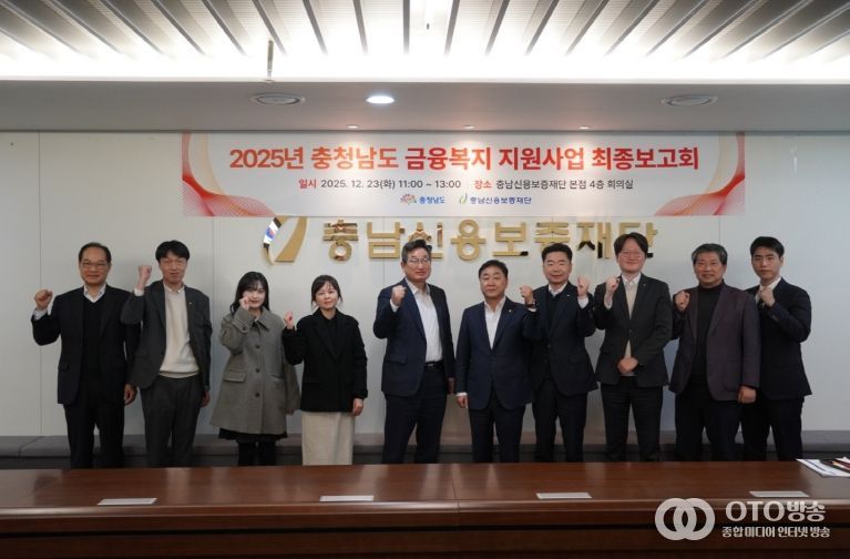 oto방송 김민석 기자 | 충남신용보증재단은 지난 12월 23일 충남신보 본점 회의실에서 '2025년 충청남도 금융복지 지원사업 최종보고회'를 개최하고 올해 사업 추진 성과를 공유하는 한편, 차년도 사업 추진 방향을 논의하는 자리를 마련했다고 밝혔다.