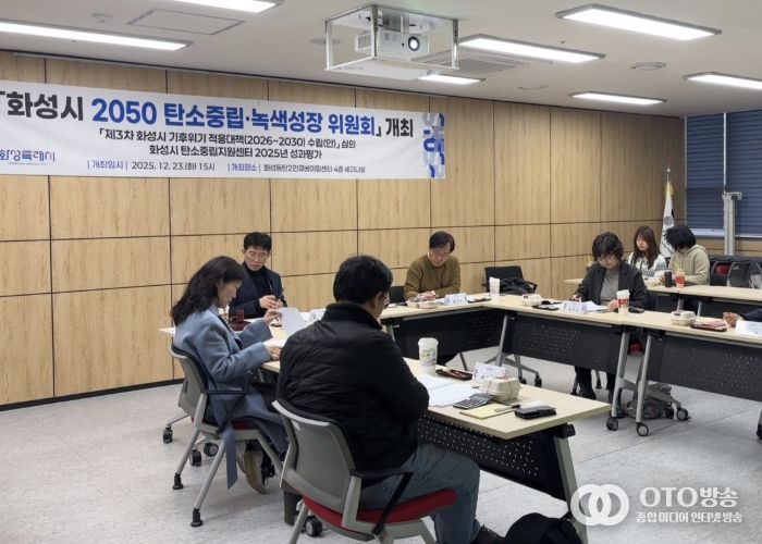 oto방송 김민석 기자 | 화성특례시는 지난 23일 화성동탄2인큐베이팅센터에서 ‘2050 탄소중립·녹색성장위원회’ 회의를 열고 '제3차 기후위기 적응대책(2026~2030)' 최종(안)과 탄소중립지원센터 2025년 성과 평가를 심의했다.