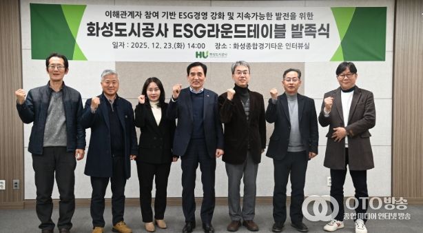 oto방송 김민석 기자 | 화성도시공사는 23일 '화성도시공사 ESG 라운드테이블 발족식'을 열고, ESG(환경·사회·지배구조) 경영을 체계적으로 추진하기 위한 협력 기반을 마련했다.