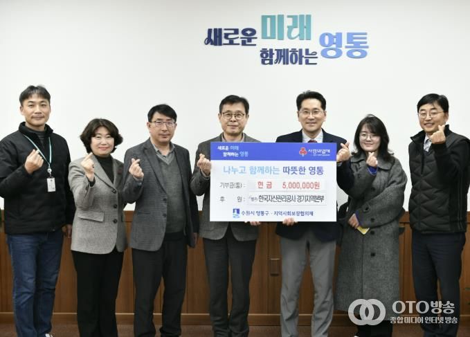 oto방송 김민석 기자 | 수원시 영통구는 지난 24일 한국자산관리공사 경기지역본부에서 관내 경제적으로 어려움을 겪는 이웃을 위해 성금 500만 원을 기부했다고 밝혔다.