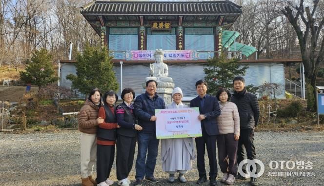 oto방송 김민석 기자 | 의왕시 부곡사가 12월 24일, 지역 내 어려운 이웃을 돕기 위해 불자들이 모은 성금 200만원과 쌀 20포를 부곡동주민센터에 전달했다.