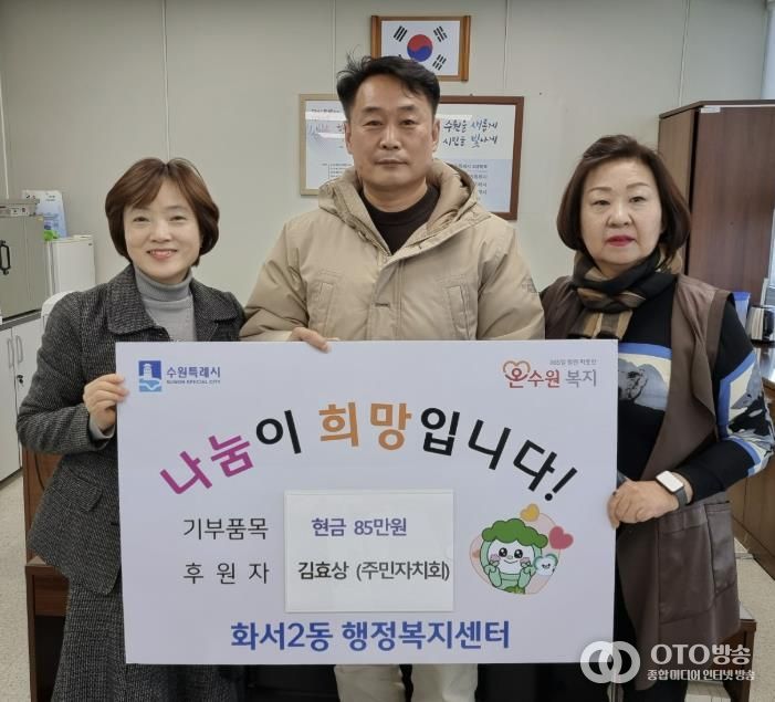 김효상 대표는 화서2동 주민자치회 문화복지분과장으로 활동하며, 평소 지역 주민의 복지 증진과 공동체 활성화를 위한 다양한 사업과 활동에 적극 참여해 왔다. 연말을 맞아 이웃을 위한 나눔을 직접 실천하고자 이번 성금 기부를 결정했으며, 특히 주민자치회 구성원으로서 지역사회에 대한 책임과 연대의 가치를 몸소 실천했다는 점에서 의미가 크다.