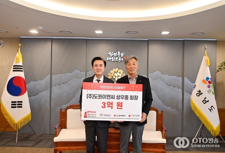 oto방송 김민석 기자 | 충남도는 31일 ㈜도원이엔씨로부터 이웃사랑 성금 3억원을 전달받았다고 밝혔다.