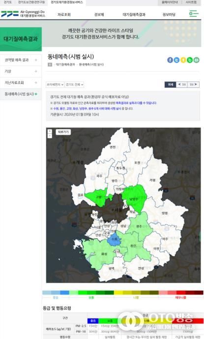 oto방송 김민석 기자 | 경기도보건환경연구원이 ‘동’ 단위까지 대기질 정보를 제공하는 ‘대기질 동네 예측 서비스’를 시작한다고 14일 밝혔다. 현재는 경기도 4개 권역 단위로 미세먼지 예측 결과를 제공하고 있어, 도민의 실제 생활권 대기질 정보를 제공하는 데 한계가 있었다.