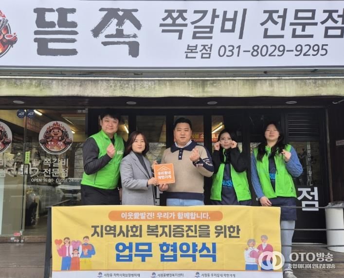 oto방송 김민석 기자 | 평택시 서정동 지역사회보장협의체는 지난 14일, 서정동에 있는 음식점 ‘뜯쪽!’을 '우리동네 착한가게'로 지정하고 현판 전달과 함께 지역사회 복지증진을 위한 협약을 체결했다.