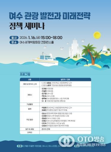 한편 이번 정책 세미나는 여수 관광의 미래 전략을 논의하기 위해 마련된 자리로, 주철현 의원, 여수시, 여수시의회, 여수광양항만공사와 함께 주최하고, 국회관광산업포럼과 공동 주관해 열렸다.
