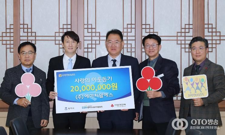 oto방송 김민석 기자 | ㈜에이치알에스는 지난 15일 평택시청 대외협력실에서 평택행복나눔본부에 이웃돕기 성금 2천만 원을 전달했다.