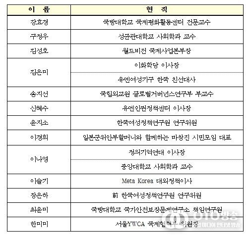 oto방송 김민석 기자 | '여성과 함께하는 평화 구상(Action with Women and Peace Initiative)' 2기 자문위원회가 1월 21일 출범했다. 금번에 출범한 2기 자문위원회는 여성‧평화‧안보, 인권, 개발협력, 사이버 등 분야에서 활동 중인 13명의 학계, 시민사회 등 민간 전문가로 구성되어 앞으로 동 구상 추진 과정에서 다양한 자문을 제공하게 된다.