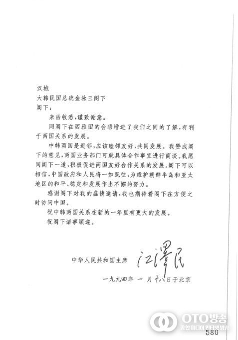 주요 외교 기록으로는 김영삼 대통령과 강택민 중국 국가주석이 양국 우호 증진을 위해 주고받은 서한을 비롯해 중국 지진 피해 위로 전문, 당시 국제적으로 큰 이목을 끌었던 ‘황장엽 망명’ 관련 친서 등이 있어 당시 외교 현장을 체험할 수 있다.
