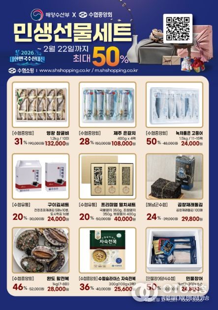 수협 온·오프라인 매장, 모바일 플랫폼(카카오톡 선물하기, 네이버 플러스 스토어)에서 설 기간에 저렴한 가격으로 수산물을 구입할 수 있는 ‘수산물 민생선물세트’도 마련했다. 참조기, 갈치 등 제수용으로 많이 사용되는 품목과 전복 등 소비 촉진이 필요한 품목 위주로 구성했으며, 최대 50% 할인하여 판매할 예정이다.
