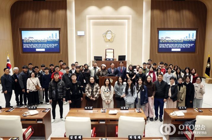 oto방송 김민석 기자 | 수원특례시의회는 1월 30일, 베트남 하노이 응우옌후에 고등학교와 25-10 고등학교 학생 50여 명과 학부모들이 참여한 의회 견학 프로그램을 진행했다.
