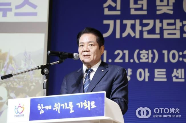 oto방송 김민석 기자 | 최대호 안양시장은 21일 오전 10시30분 안양시 만안구 안양동 안양아트센터 컨벤션홀에서 신년 기자간담회를 열고 올해 시정 운영 방향인 ‘시민의 행복을 담다, 안양의 미래를 더하다’를 골자로 한 2025년 시정운영 계획을 밝혔다.