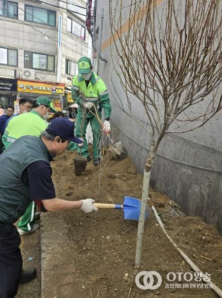 oto방송 김민석 기자 | 수원시 영통구 매탄1동 행정복지센터는 지난 28일, 봄을 맞이하여 새로운 손바닥정원 조성에 발 벗고 나섰다. 이번 조성엔 매탄1동 주민, 손바닥정원단, 공무원이 협업하여 오랫동안 방치되어 골칫거리였던 버려진 화단을 손바닥정원으로 발굴하여 정비했다.