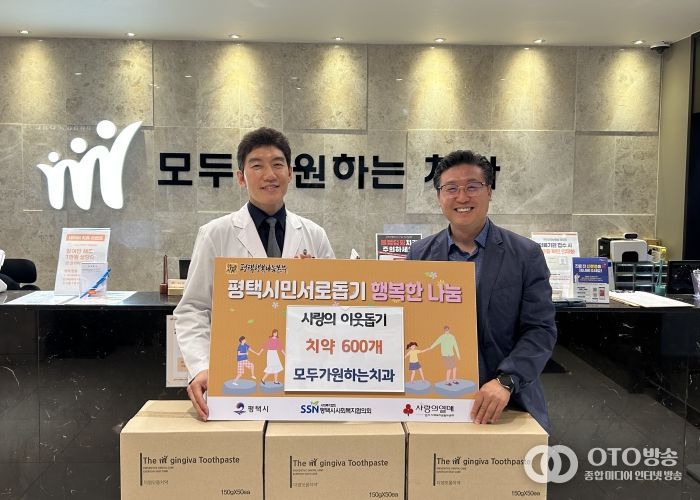 oto방송 김민석 기자 | 모두가 원하는 치과는 평택행복나눔본부에 600만 원 상당의 치약 600개를 전달했다.