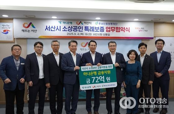 oto방송 김민석 기자 | 충남신용보증재단은 4일 서산시청에서 서산시, 하나은행과 함께 총 72억 원 규모의 소상공인 특례보증을 위한 업무협약을 체결했다고 밝혔다.