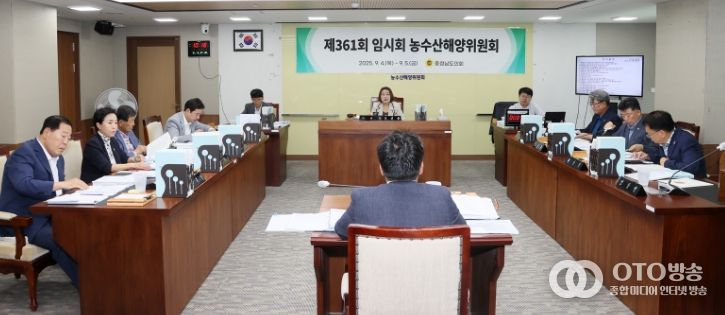 oto방송 김민석 기자 | 충남도의회 농수산해양위원회는 5일 제361회 임시회 제2차 회의에서 충남도 농축산국‧해양수산국 소관 2025년 추가경정예산안, 조례안 등과 농축산국 2025년도 출연계획안을 심사했다.