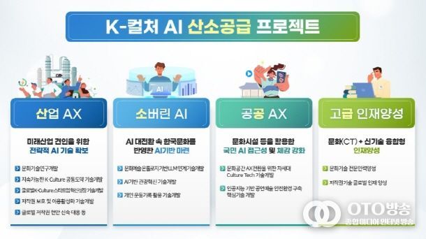 이에 2026년 문체부 연구개발(R&D) 예산은 ‘케이(K)-컬처 에이아이(AI) 산소공급 프로젝트’를 중심으로 구성해 ‘케이-컬처’의 전후방 산업 파급력을 증대시키고 ‘인공지능 3강 도약’을 위한 인공지능 활용을 극대화한다. 이를 통해 ▴콘텐츠산업의 기획부터 제작, 수출 전 과정에 인공지능 기술을 도입해 산업의 인공지능 전환(AX)을 도모하고, ▴한국문화를 반영한 인공지능 기술을 개발해 자국 인공지능(소버린 AI)을 강화한다. ▴공공 문화시설에 인공지능 기술을 적용해 국민의 인공지능 접근성과 체감도를 높이고, ▴융합형 인공지능 인재를 양성하는 사업도 추진해 ‘세계 소프트파워 5대 문화강국’ 실현에 기여할 것으로 보인다.