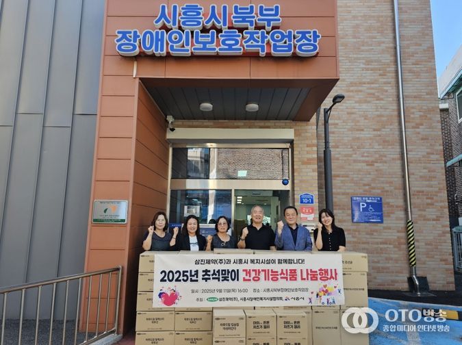 oto방송 김민석 기자 | 삼진제약(주)이 시흥시 장애인들을 위한 따뜻한 추석맞이 나눔을 실천했다. 이번 후원 물품은 4,200만원 상당의 건강기능식품으로 시흥시 장애인들의 건강한 삶을 응원하기 위해 시흥시장애인복지시설협의회에 지난 4일 전달됐다.