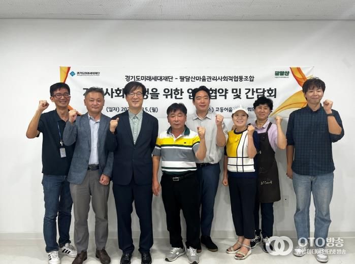 oto방송 김민석 기자 | 경기도미래세대재단은 15일 교동어울림센터에서 팔달산마을관리사회적협동조합과 업무협약을 체결하고, 지역 상생과 사회공헌 활성화를 위한 간담회를 진행했다.