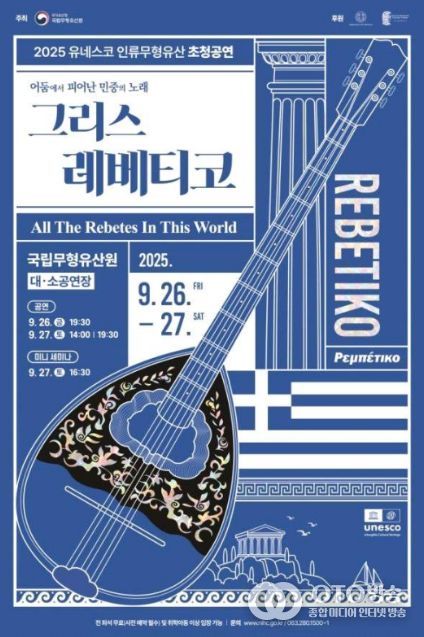 oto방송 김민석 기자 | 국가유산청 국립무형유산원은 오는 9월 26일과 27일 총 3회에 걸쳐 국립무형유산원(전북 전주시) 얼쑤마루 대공연장에서 유네스코 인류무형유산 초청공연 '그리스 레베티코'를 개최한다.