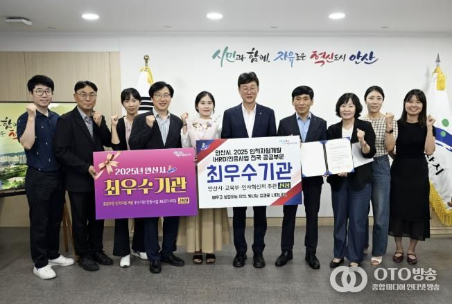 oto방송 김민석 기자 | 안산시는 교육부와 인사혁신처, 한국직업능력연구원이 공동으로 주관하는 ‘2025년 인적자원개발(Human Resources Development) 심사’에서 공공부문 최우수기관(Best HRD)으로 선정되는 영예를 안았다고 18일 밝혔다.