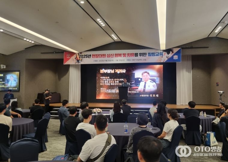oto방송 김민석 기자 | 충남소방본부는 18일 태안군 아일랜드 리솜에서 도내 16개 소방서 구급대원 등 100여 명이 참석한 가운데, ‘현장대원 심신 회복 및 치유를 위한 힐링 교육’을 진행했다.