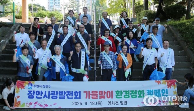 oto방송 김민석 기자 | 수원시 장안구의 대표 봉사단체인 장안사랑발전회는 지난 18일 영화천변 일대에서 ‘가을맞이 환경정화’ 활동을 실시했다.