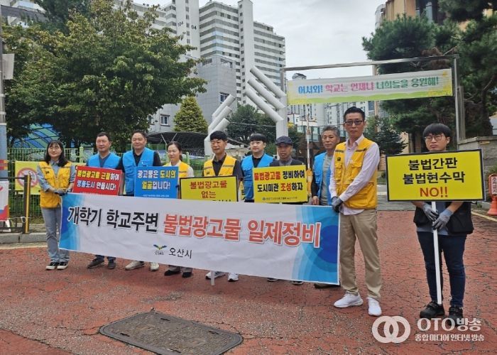 이번 정비는 오산시청 건축과와 송진영 시의원, 경기도 옥외광고협회 오산시지부가 함께 민·관 공동으로 추진했으며, 주요 학교 인근 도로와 통학로를 중심으로 불법 현수막을 집중 철거했다.