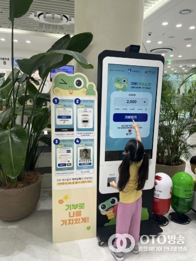 oto방송 김민석 기자 | 수원 시립하늘채더퍼스트1 어린이집 원아들이 19일 수원시청 통합민원실을 방문해 기부 키오스크로 소액 기부를 하며 기부의 기쁨을 체험했다.